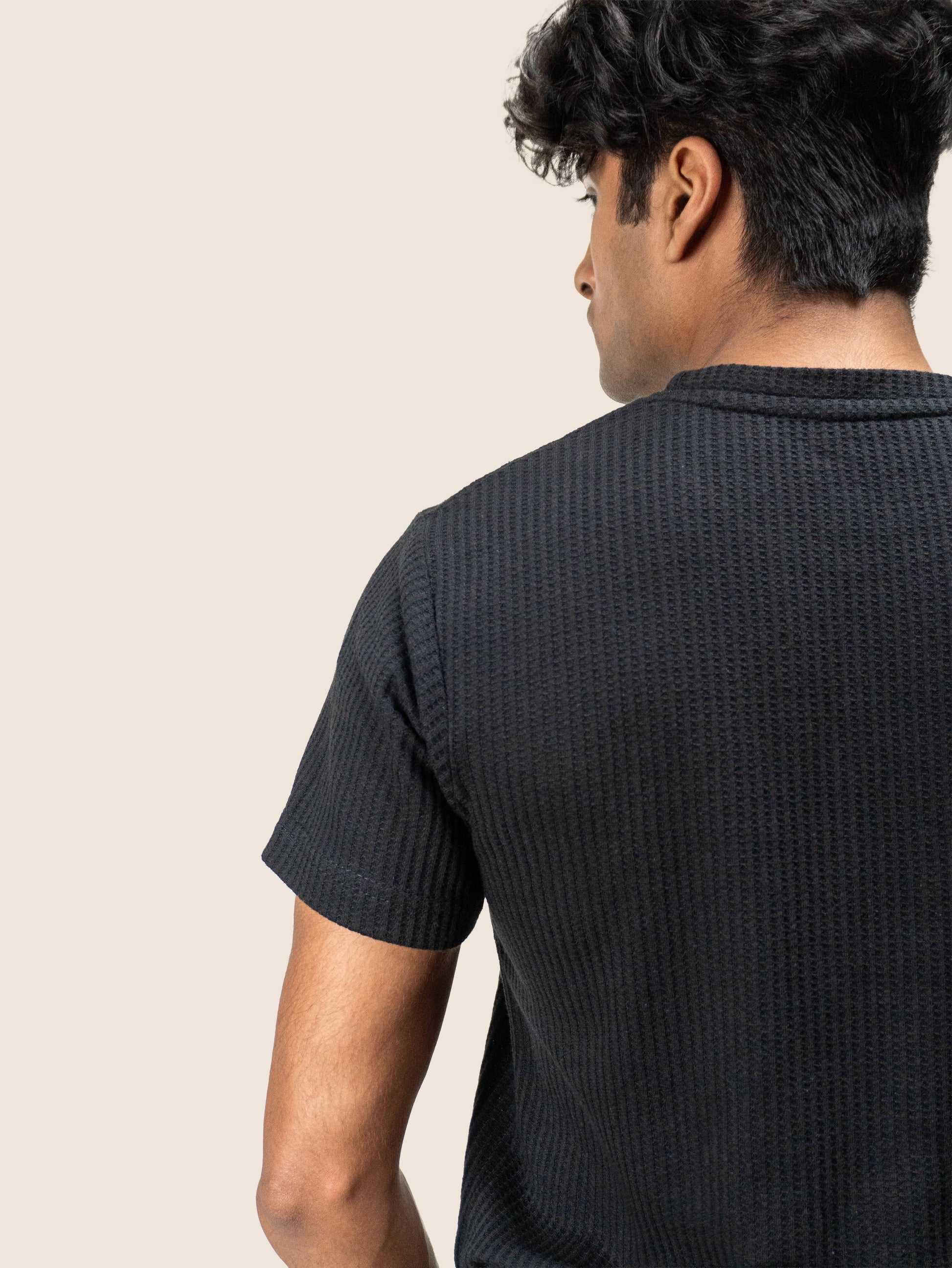 BLACK TEXTURED T-SHIRT